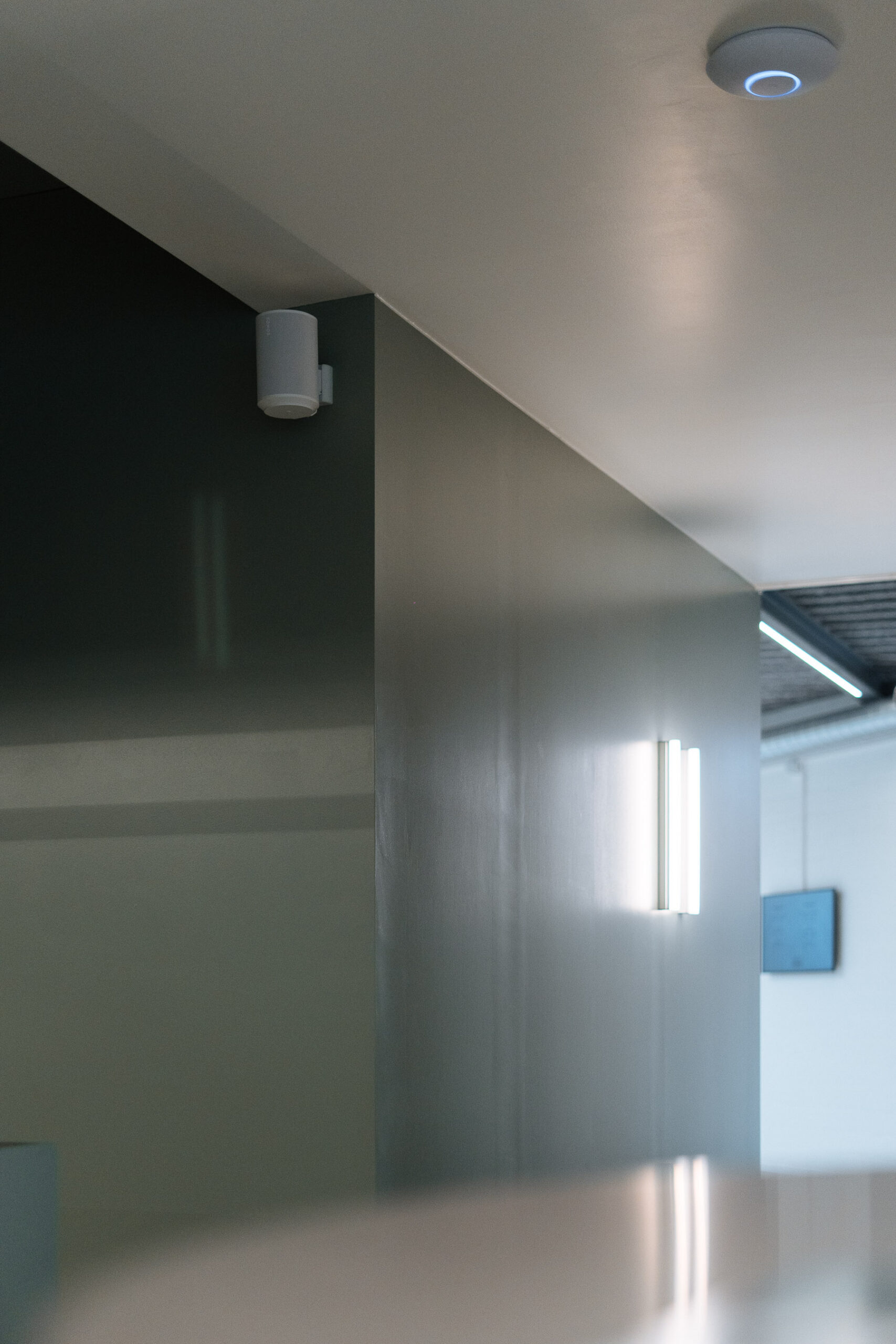Voor het audiosysteem werd gekozen voor Sonos Era 100 speakers, aangevuld met een Sonos Sub Mini. Deze combinatie zorgt voor een helder, krachtig en evenwichtig geluidsbeeld dat motiveert tijdens intensieve workouts en tegelijk rust en focus ondersteunt tijdens meer ontspannen of mentale trainingsmomenten. Dankzij de flexibele zone-aansturing kan de sfeer in elke ruimte perfect worden afgestemd op het moment van de dag. Op visueel vlak werd Inform uitgerust met Samsung QM43C professionele 4K UHD displays. Deze hoogwaardige commerciële schermen bieden uitstekende beeldkwaliteit en betrouwbaarheid, en worden ingezet voor trainingscontent, clubinformatie en inspirerende visuals. Hun strakke afwerking sluit naadloos aan bij het premium interieurconcept van Frahm.